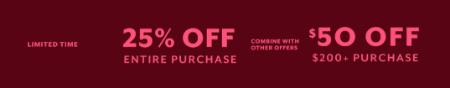 25% Off Entire Purchase Combine With Other Offer $50 Off $200+ Purchase