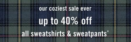 Our coziest sale ever! Shop in store and save up to 40% off on all sweatshirts & sweatpants.