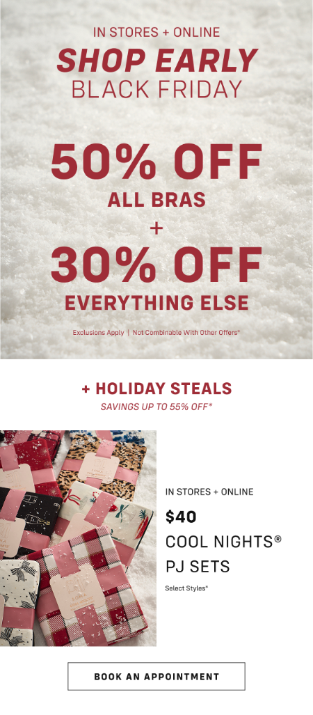 Shop 50% off all bras for a limited time! Oh yeah... and everything else is 30% off!*