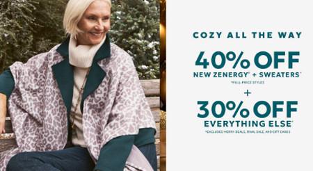 Don't miss out! Shop in store and get 40% off New Zenergy & sweaters plus 30% off everything else.