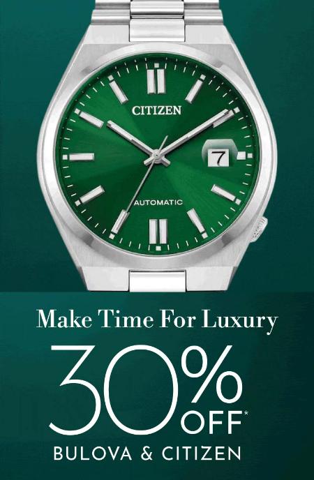 Stop by and take 30% off on Bulova & Citizen in store for a limited time.