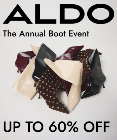 Up to 60% off sale boots; prices as shown. Valid in-store between January 29, 2026 and February 11, 2026, at 11:59 PM EST. Offer applied before applicable taxes and shipping costs. Cannot be combined with any other offer, loyalty rewards, gift cards, or shoe care. No adjustments on prior purchases. Subject to change at anytime. Valid in the United States only.