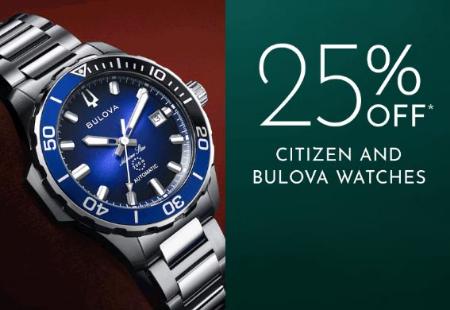 Hurry in and take 25% off on Citizen and Bulova watches in store for a limited time.